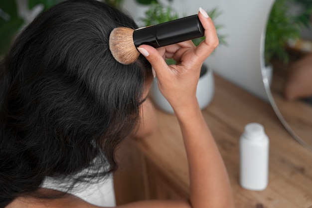 - Aplikacja tonera: Skorzystaj z pędzla fryzjerskiego, aby równomiernie nałożyć toner na każdą sekcję. Pamiętaj, żeby dokładnie pokryć całą długość pasm.