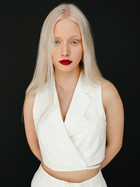 Platynowy blond to kolor, który szczególnie dobrze komponuje się z jasną karnacją, a zwłaszcza z niebieskimi lub zielonymi oczami. Te odcienie wspaniale akcentują chłodny ton platynowego blondu, nadając osobom o porcelanowej skórze wyjątkowy blask i świeżość.